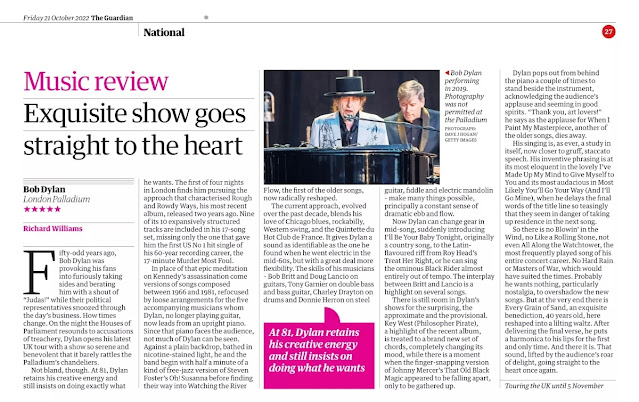 John Mulvey over Dylans eerste 2022 concert in London, zie hier. [met dank aan Arjan en Ed]